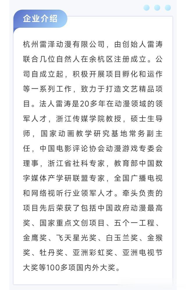 不过出品方还有一个是杭州雷泽动漫了,该公司的介绍如图